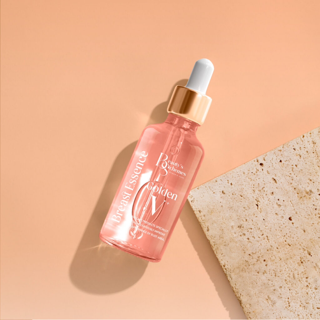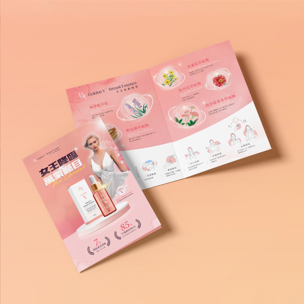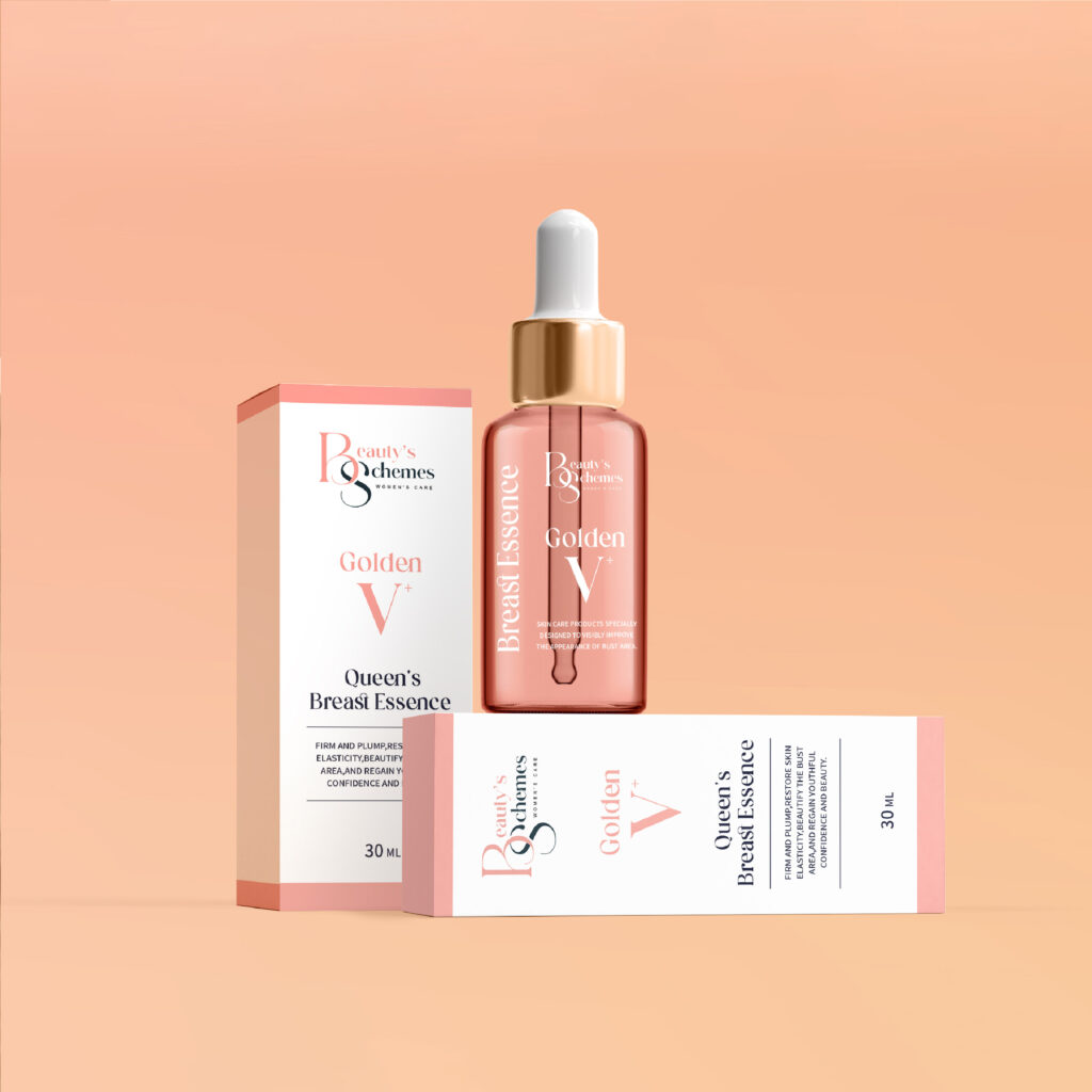 包裝設計|這次替心甯集團打造全新美胸保養產品《Beauty’s Schemes Golden V+ 美胸精華液》,我們從瓶型選擇開始就參與討論,協助品牌找出能體現高單價定位與產品訴求的視覺語言。
