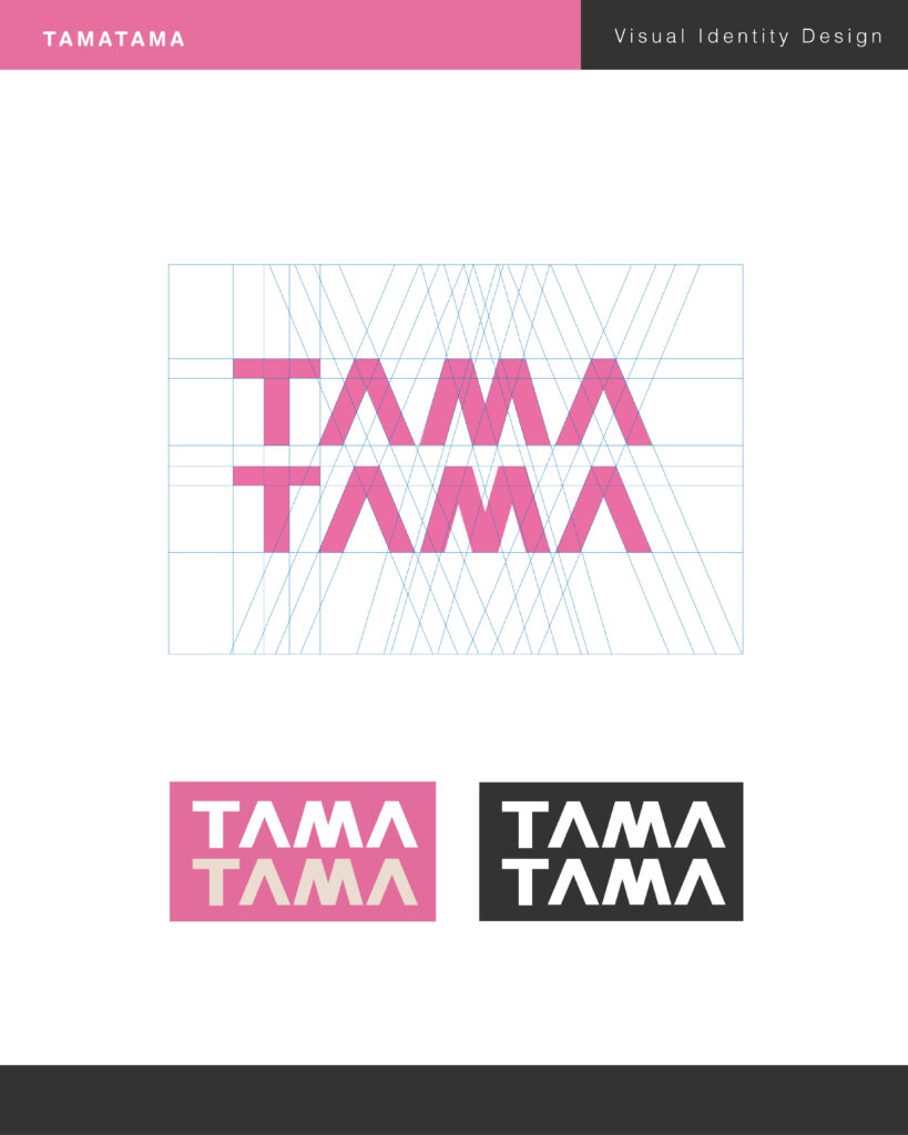 由於 TAMA TAMA 是連續重複拼音,在字型設計上也需特別注意重複出現時,字重是否平衡協調,並透過細微的視覺補償進行調整!